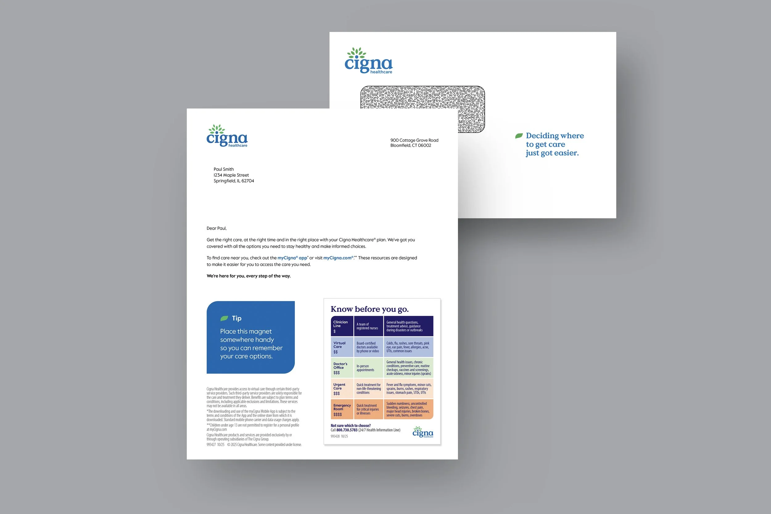 Letter, envelope, and removable magnet with healthcare tips